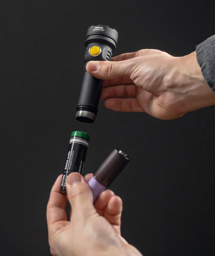 A Prime C2 Pro MAX szinte minden területen tarol, 4000 lumen fényerejű LED-je legnagyobb fényerővel 260 méter távolságig képes bevilágítani a környezetet. Ehhez a hatalmas fényhez a jól megszokott 18650-es akkumulátornál sokkalta erősebb 21700-as 5000 mAh Li-ion akkumulátort vetették be az Armytek tervezői, de azért odafigyeltek, hogy a 18650-es akkumulátor is használható legyen egy adapter segítségével.