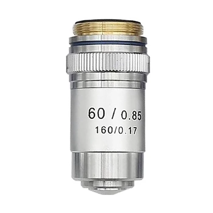 A 60x-os objektív a legnagyobb nagyítást adó nem immerziós objektív. Megfelelő okulárral (WF16x) elérhető vele a közel 1000x-es nagyítás, mely más esetben csak az immerziós olaj vagy -oldat használatát igénylő 100x objektívvel érhető el.