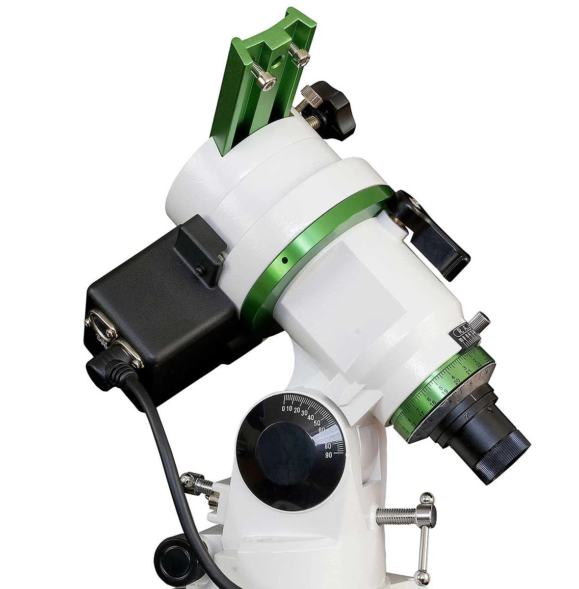 SkyWatcher EQM-35 Pro Goto mechanika sokaknak ismerős lehet akiknek volt vagy van EQ-3-as mechanikája. Pedig ez a modell sokkal több mint elsőre gondolnánk. A mechanikafej az HEQ-5-nél megismert igen stabil acéllábakon nyugszik, a fej pedig tartogat némi meglepetést, azon túl, hogy teljes értékű GOTO funkcióval rendelkezik, még könnyen hordozható asztrofotós mechanikaként is bevethető. Beépített pólustávcsöve segít a pontos pólusra állásban. A fejére bármely Vixen-szabványú prizmasínes távcső felhelyezhető, egészen 10 kg-os tömegig. Áttervezett, megnövelt átmérőjű csigahajtómű kereke minimalizálja periodikus hibák mértékét.