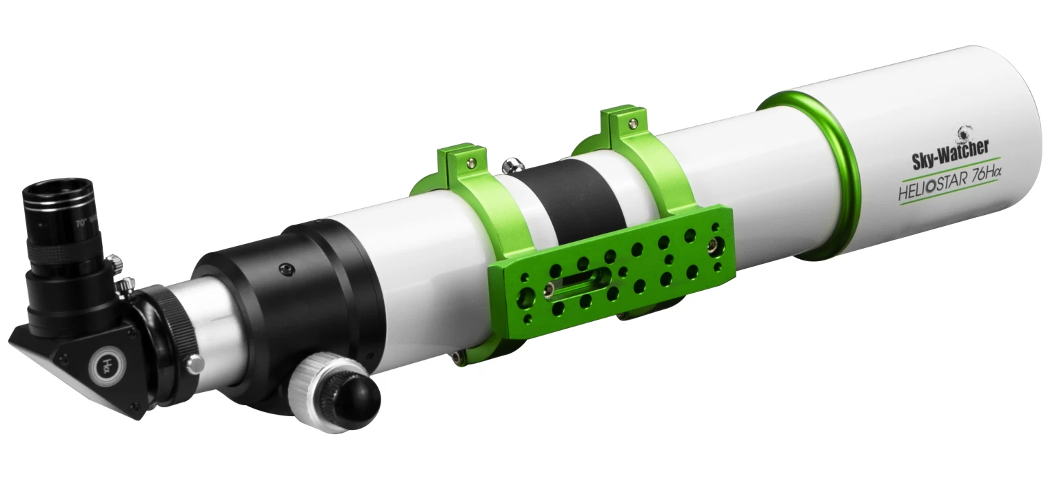 A SkyWatcher Heliostar 76/630 H-alpha naptávcső az első olyan eszköz a neves gyártó palettáján, melyet kifejezetten amatőrcsillagászok számára alkottak meg a Nap hidrogén-alfa hullámhossztartományában látható jelenségeinek megfigyelésére. Megpillanthatjuk központi csillagunk peremén a protuberanciákat (napkitörések), illetve a látható fény tartományában észlelhetetlen felületi képződményeket (flerek).
