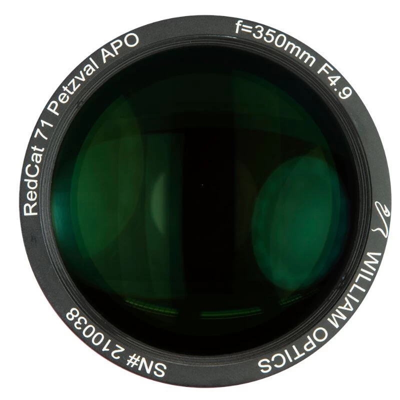 Az asztrofotózás különleges kritériumokat, komoly elvárásokat támaszt az optikákkal szemben, amelyet a William Optics RedCat AP 71/350 APO refraktor elegánsan teljesít. A kompakt méretű tubus Petzval rendszerű optikája négy optikai elemből áll, amelyet három csoportba rendeztek, magas minőségű FPL53 és FPL51 üveganyagokat felhasználva. Természetesen az eredmény nem is maradt el. A teljes látómező a sarkokig sík, tehát a kép szélein is pontszerű leképezéssel dolgozik az optika, miközben, színek tekintetében is lenyűgözően teljesít. Akár csillagászati kamerákhoz, akár full-frame DSLR gépekkel történő fotózáshoz is tökéletesen használható, hiszen több mint 44 mm átmérőjű kört képes kirajzolni! Fényerő tekintetében is igazi fotós eszközről lévén szó F/4.9 értékével rövid expozíciós idők érhetőek el, hála a fluorit üveganyagoknak, gyönyörű, kromatikus abberációtól mentes leképezéssel kombinálva.